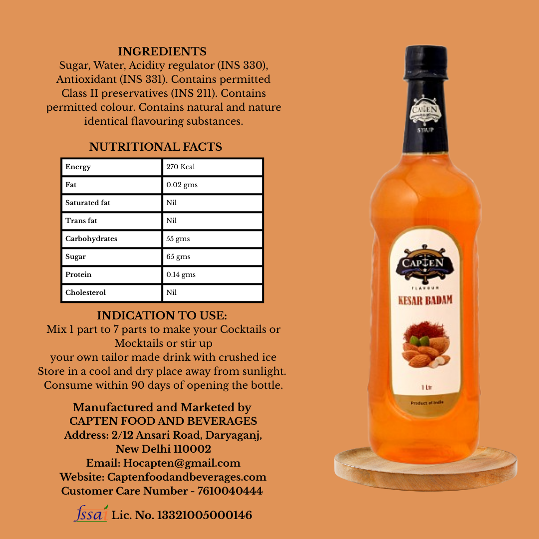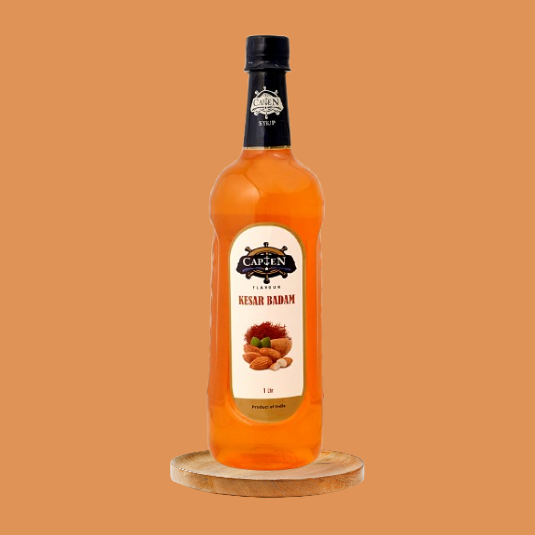 CAPTEN Kesar Badam Syrup 1L | Mixer for Fruit Shakes, Mocktails, Cocktails, Drinks, Sharbat, Sorbets, Juices, Beverages