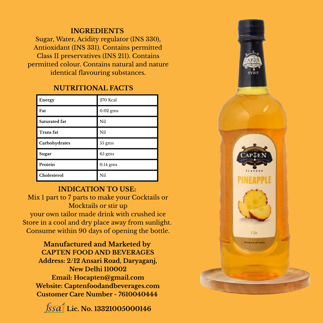 Be the first to review “CAPTEN Pineapple Syrup | Fruit Mixer for Mocktails, Cocktails, Drinks, Juices, Beverages | Non Alcoholic Mix 1L Bottle”