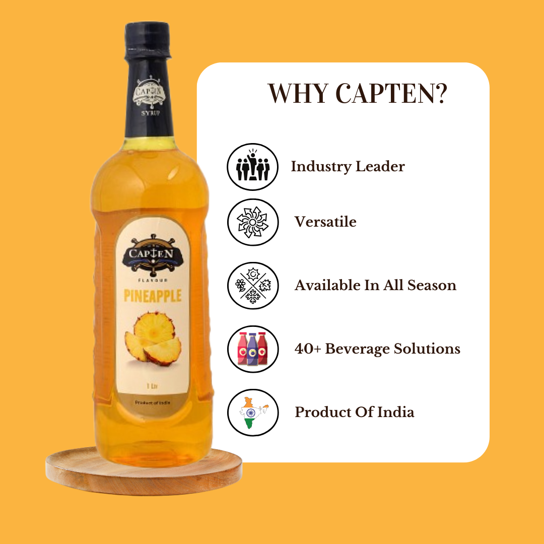 CAPTEN Pineapple Syrup | Fruit Mixer for Mocktails, Cocktails, Drinks, Juices, Beverages | Non Alcoholic Mix 1L Bottle