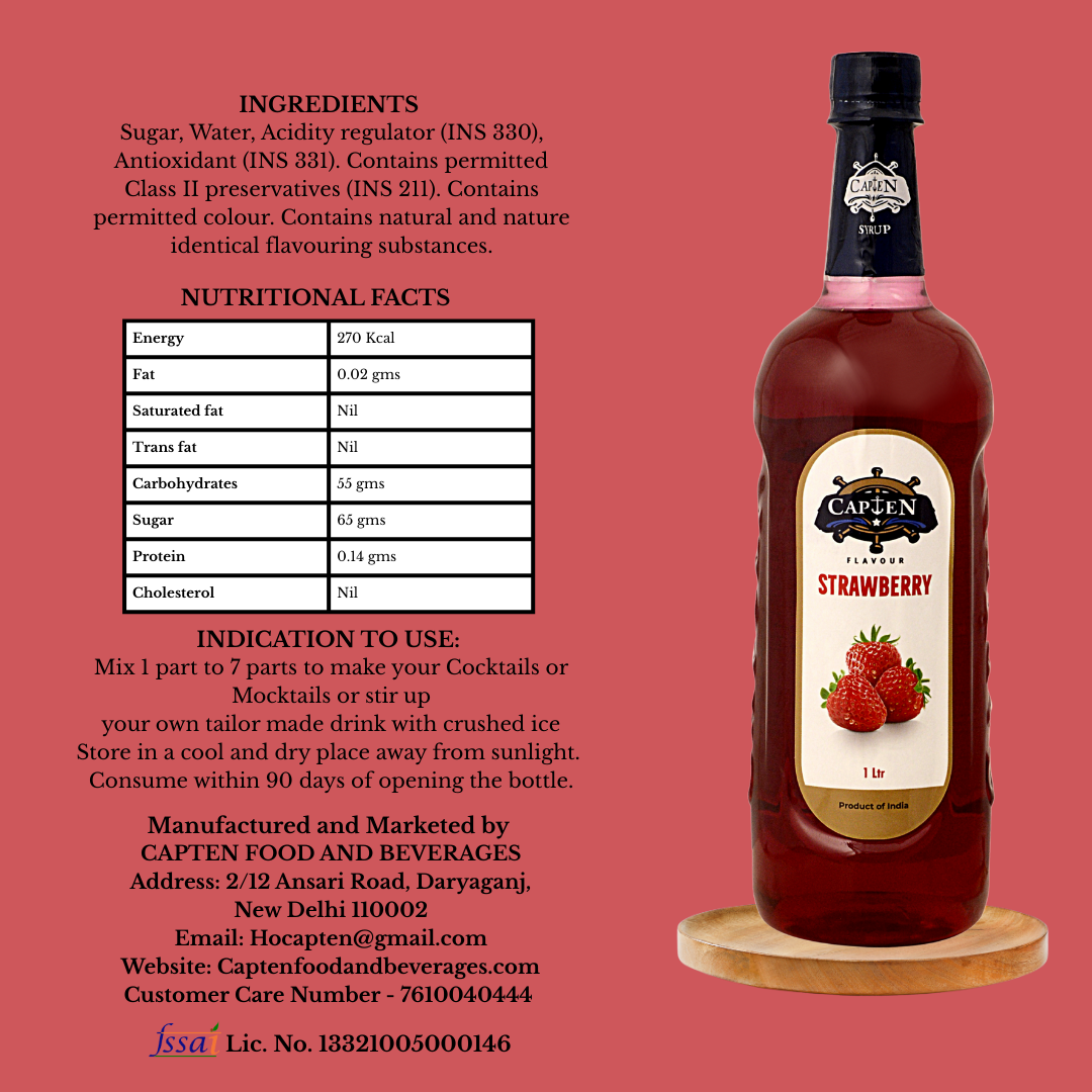 Be the first to review “CAPTEN Strawberry Syrup 1L | Authentic Strawberry Flavor for Mocktails, Cocktails, Lemonades, Iced Teas & More | 35+ Flavours”