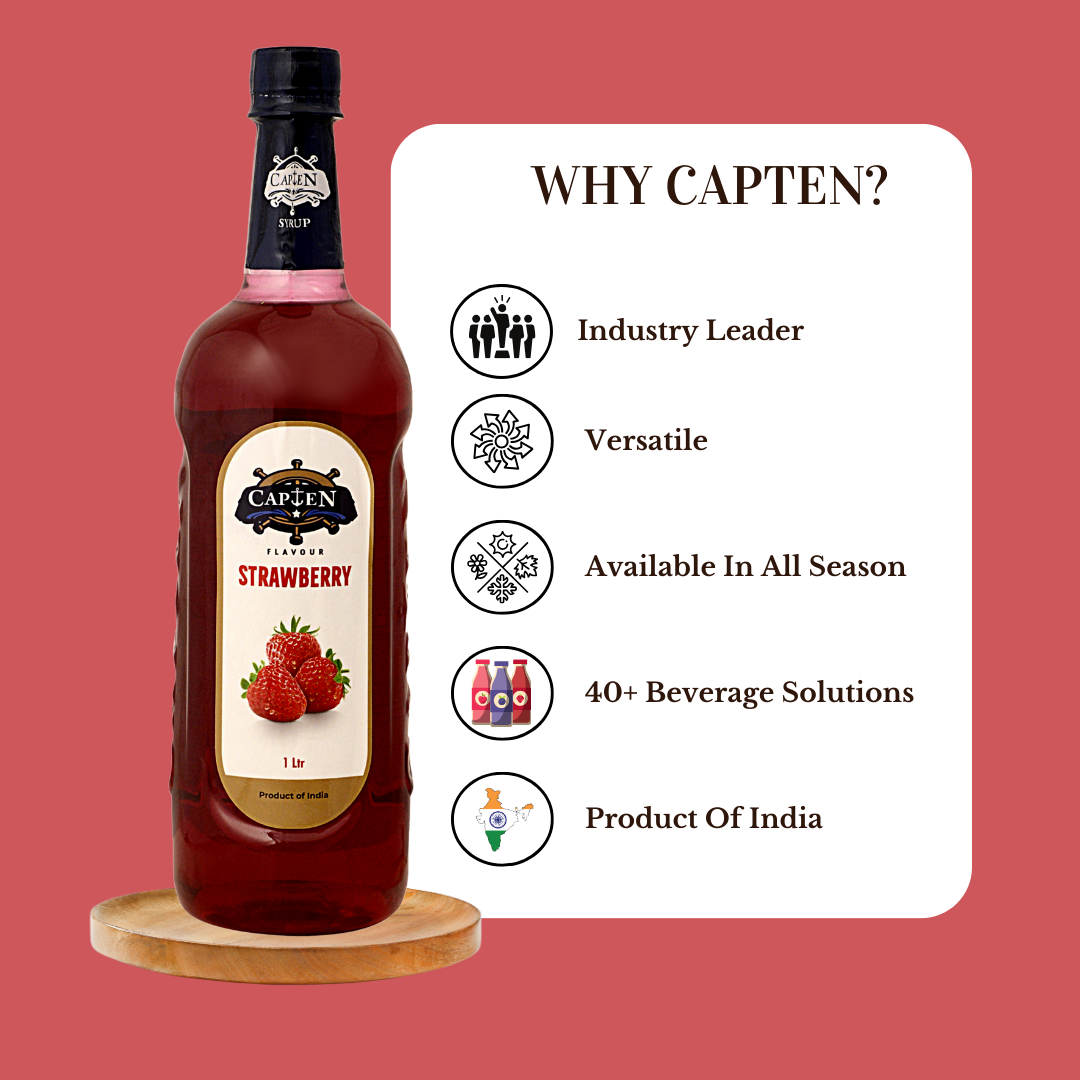 CAPTEN Strawberry Syrup 1L | Authentic Strawberry Flavor for Mocktails, Cocktails, Lemonades, Iced Teas & More | 35+ Flavours